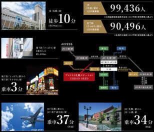 JR函館本線/札幌駅 徒歩10分 札幌市営東西線/西11丁目駅 徒歩11分 札幌市営南北線/さっぽろ駅 徒歩13分 |