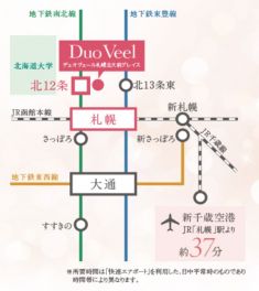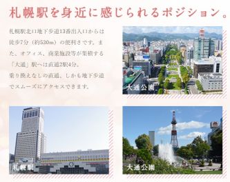 札幌市営南北線/北12条駅 徒歩2分 札幌市営東豊線/北13条東駅 徒歩7分 JR函館本線/札幌駅 徒歩10分 |
